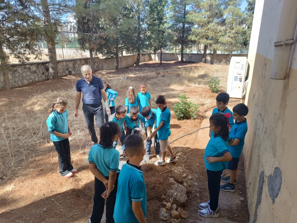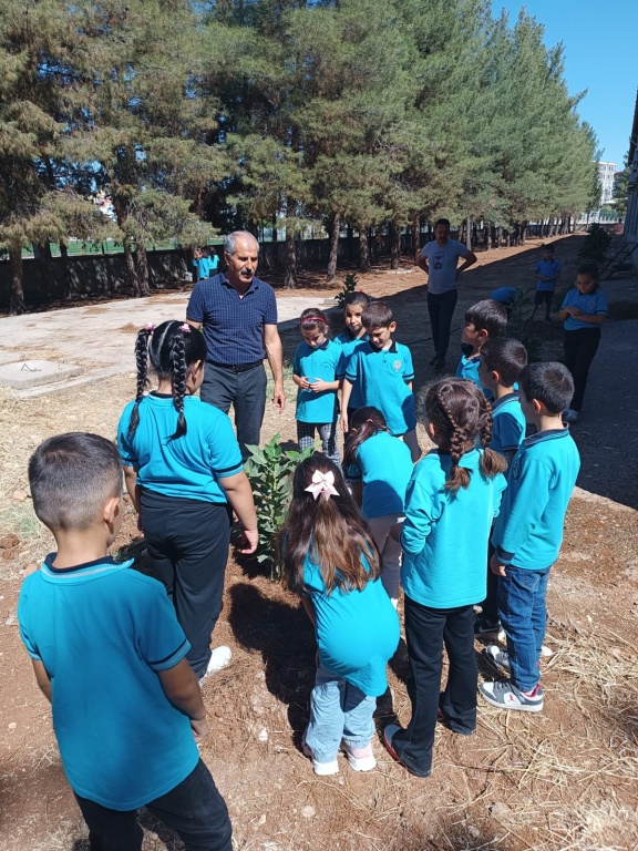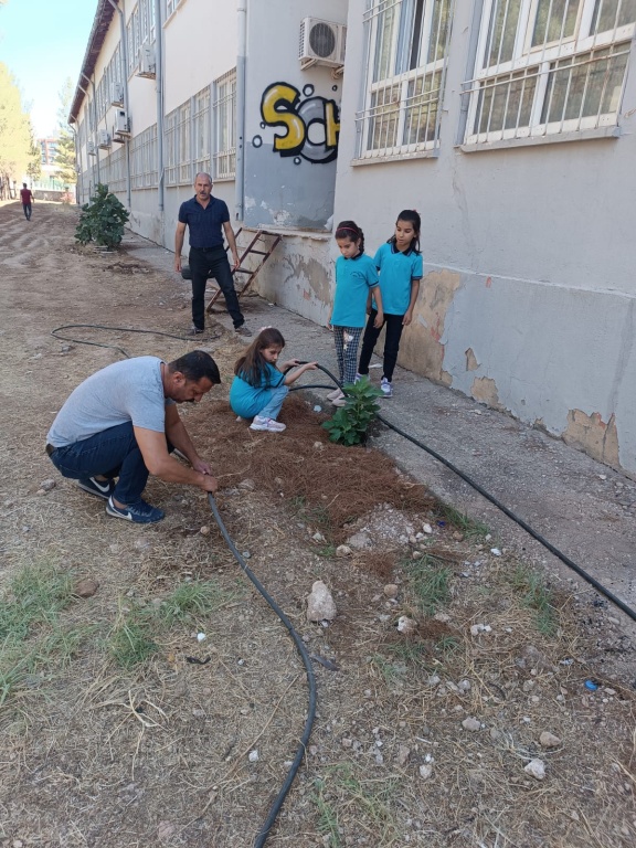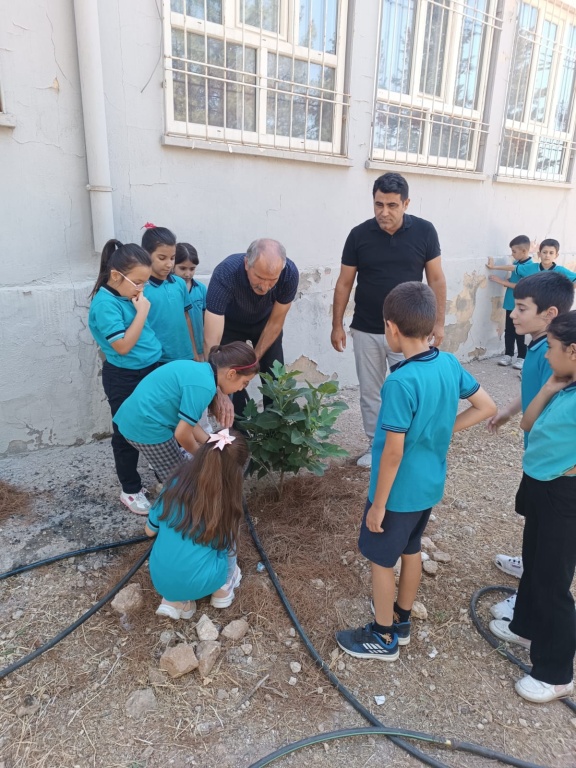 Okulumuzun bahçesinde geçen yıl dikilen incir ağaçlarının bakımı, 3/A sınıfı öğrencileri ve değerli öğretmenleri Afif ALTUNKAYA tarafından büyük bir özveriyle yapılmaktadır. Öğrencilerimiz, ağaçların sulanması, topraklarının havalandırılması ve bakımlarının düzenli olarak yapılmasıyla çevre bilincini yaşayarak öğreniyor. Bu çalışmalar, onların doğaya karşı sorumluluk duygusunu geliştirdiği gibi, aynı zamanda iş birliği ve paylaşma kültürünü de güçlendiriyor.