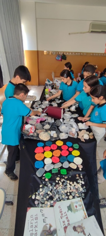 Okulumuz 4/A sınıfı öğrencileri, öğretmenleri Tali Aslan rehberliğinde Fen Bilimleri dersinde “Kayaç, Maden ve Fosiller” konusunu işlediler.